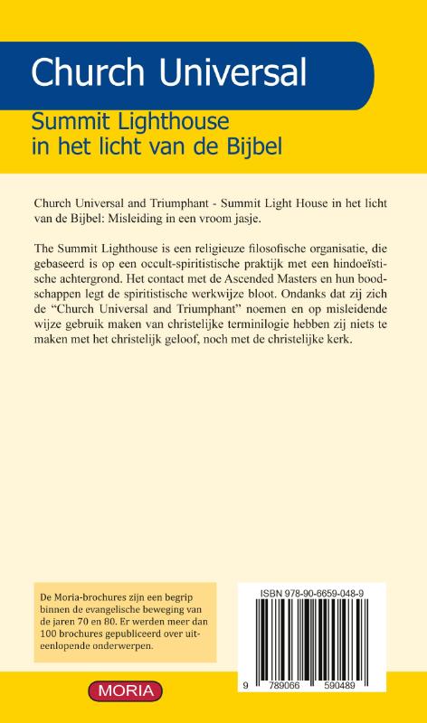 Church Universal and Triumphant – Summit Light House in het licht van de Bijbel: Misleiding in een vroom jasje.The Summit Lighthouse is een religieuze filosofische organisatie, die gebaseerd is op een occult-spiritistische praktijk met een hindoeïstische achtergrond. Het contact met de Ascended Masters en hun boodschappen legt de spiritistische werkwijze bloot. Ondanks dat zij zich de “Church Universal and Triumphant” noemen en op misleidende wijze gebruik maken van christelijke terminilogie hebben zij niets te maken met het christelijk geloof, noch met de christelijke kerk.