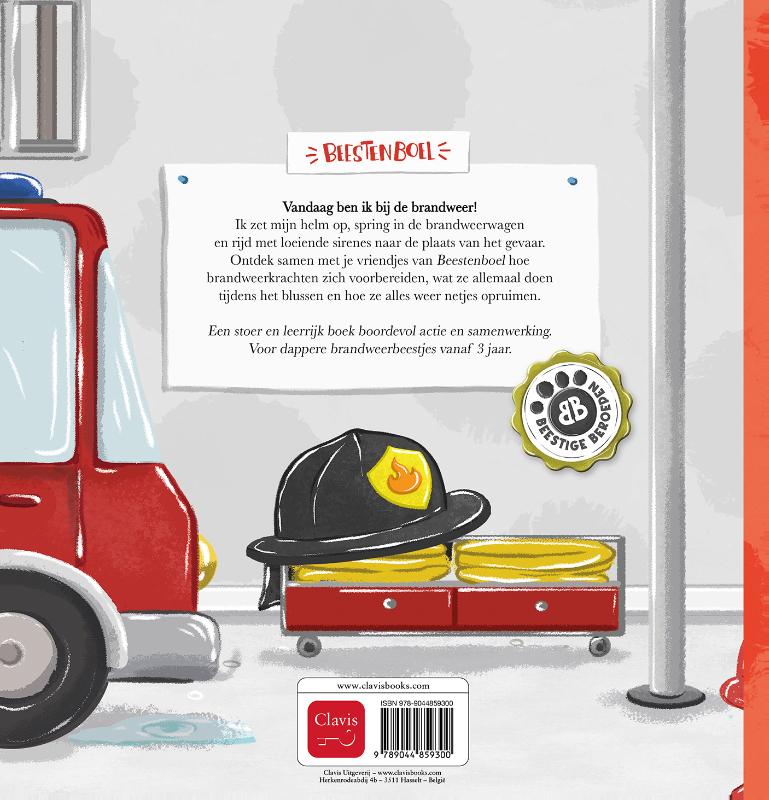 Vandaag ben ik bij de brandweer! Ik zet mijn helm op, spring in de brandweerwagen en rijd met loeiende sirenes naar de plaats van het gevaar. Ontdek samen met je vriendjes van Beestenboel hoe brandweerkrachten zich voorbereiden, wat ze allemaal doen tijdens het blussen en hoe ze alles weer netjes opruimen.Een stoer en leerrijk boek boordevol actie en samenwerking. Voor dappere brandweerbeestjes vanaf 3 jaar.