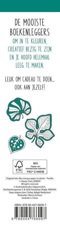 Set van 36 originele boekenleggers met natuurmotieven om in te kleuren. Leuk om cadeau te doen, maar ook om je eigen creativiteit op los te laten en je hoofd even helemaal leeg te maken!