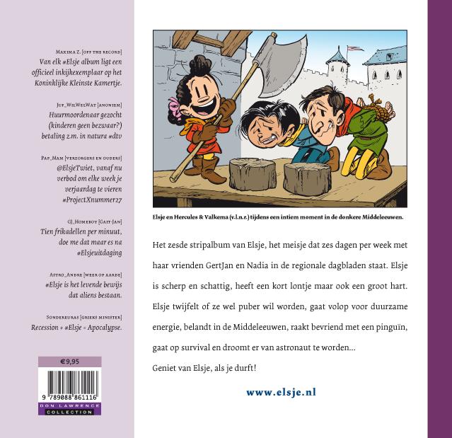 Het zesde stripalbum van Elsje, het meisje dat zes dagen per week in de regionale dagbladen staat. Elsje is zoals altijd knuffelbaar, maar ook prikkelbaar, meedogenloos en schattig. In dit album probeert Elsje een puber te worden, gaat volop voor duurzame energie, belandt in de middeleeuwen, raakt bevriend met een pinguïn, gaat op survival en droomt er van astronaut te worden… Humor voor jong en oud in vele lagen. Geniet van Elsje als je durft!
