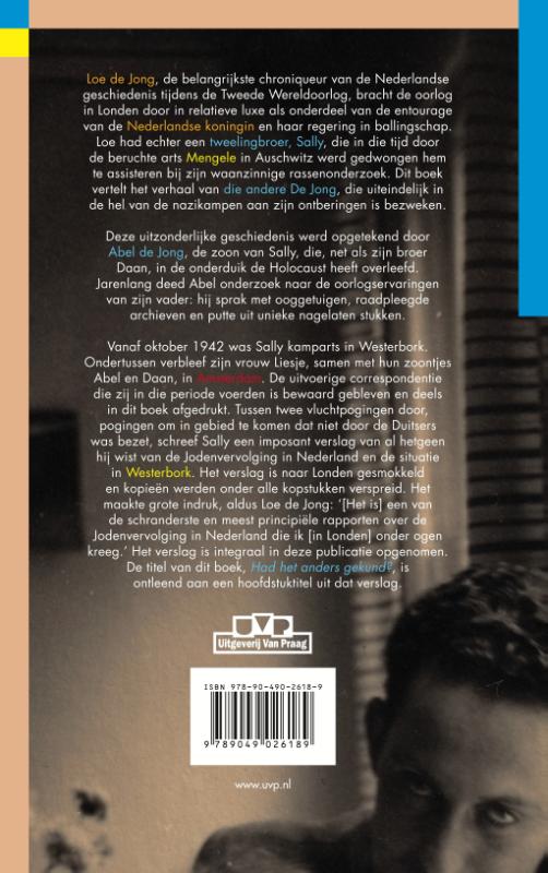 Loe de Jong, de belangrijkste chroniqueur van de Nederlandse geschiedenis tijdens de Tweede Wereldoorlog, bracht de oorlog in Londen door in relatieve luxe als onderdeel van de entourage van de Nederlandse koningin en haar regering in ballingschap. Loe had echter een tweelingbroer, Sally, die in die tijd door de beruchte arts Mengele in Auschwitz werd gedwongen hem te assisteren bij zijn waanzinnige rassenonderzoek. Dit boek vertelt het verhaal van die andere De Jong, die uiteindelijk in de hel van de nazikampen aan zijn ontberingen is bezweken.Deze uitzonderlijke geschiedenis werd opgetekend door Abel de Jong, de zoon van Sally, die, net als zijn broer Daan, in de onderduik de Holocaust heeft overleefd. Jarenlang deed Abel onderzoek naar de oorlogservaringen van zijn vader: hij sprak met ooggetuigen, raadpleegde archieven en putte uit unieke nagelaten stukken.Vanaf oktober 1942 was Sally kamparts in Westerbork. Ondertussen verbleef zijn vrouw Liesje, samen met hun zoontjes Abel en Daan, in Amsterdam. De uitvoerige correspondentie die zij in die periode voerden is bewaard gebleven en deels in dit boek afgedrukt. Tussen twee vluchtpogingen door, pogingen om in gebied te komen dat niet door de Duitsers was bezet, schreef Sally een imposant verslag van al hetgeen hij wist van de Jodenvervolging in Nederland en de situatie in Westerbork. Het verslag is naar Londen gesmokkeld en kopieën werden onder alle kopstukken verspreid. Het maakte grote indruk, aldus Loe de Jong: ‘[Het is] een van de schranderste en meest principiële rapporten over de Jodenvervolging in Nederland die ik [in Londen] onder ogen kreeg.’ Het verslag is integraal in deze publicatie opgenomen. De titel van dit boek, Had het anders gekund?, is ontleend aan een hoofdstuktitel uit dat verslag.Het boek is voorzien van diverse illustraties, zowel documenten als historische foto’s, waarvan veel in kleur.