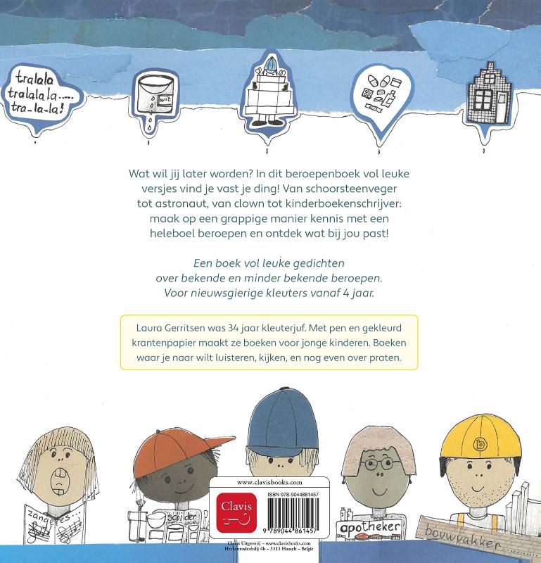 Wat wil jij later worden? In dit beroepenboek vol leuke versjes vind je vast je ding! Van schoorsteenveger tot astronaut, van clown tot kinderboekenschrijver: maak op een grappige manier kennis met een heleboel beroepen en ontdek wat bij jou past!Een boek