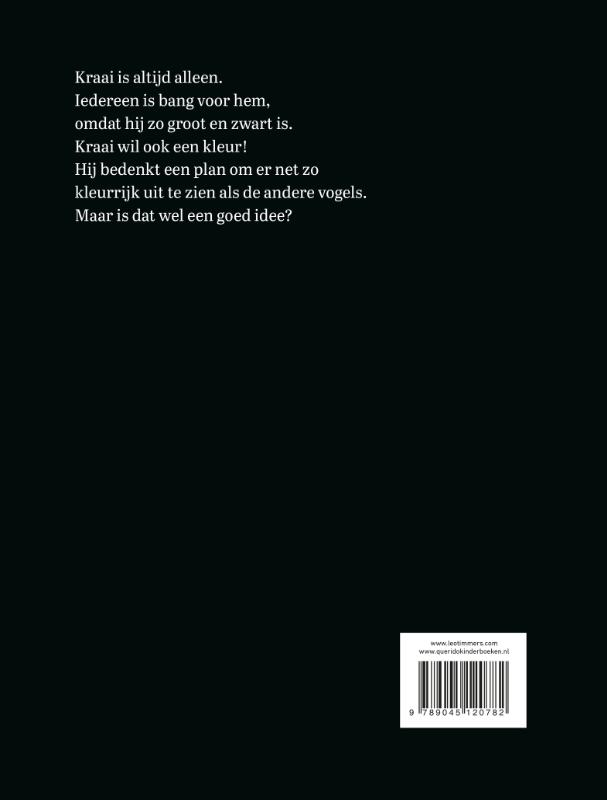 Kraai is altijd alleen.Iedereen is bang voor hem, omdat hij zo groot en zwart is.Kraai wil ook een kleur!Hij bedenkt een plan om er net zo kleurrijk uit te zien als de andere vogels.Maar is dat wel een goed idee?