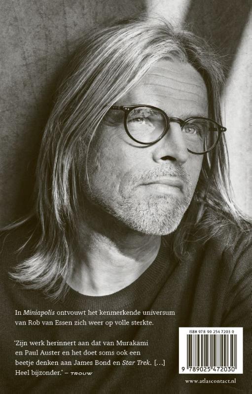 ‘Miniapolis’ is een roman waarin het kenmerkende universum van Rob van Essen zich weer op volle sterkte ontvouwt – vervreemdend maar altijd menselijk, melancholisch maar nooit zonder humor. Zeggen ze niet altijd dat de reis belangrijker is dan de bestemming? Misschien is dat zo. Maar soms heeft de bestemming het laatste woord. De moeder van Jonathan is vier jaar geleden overleden. Toch ziet hij haar op een ochtend in de tram. Hij neemt haar mee de stad uit, op zoek naar het landhuis waar ze is opgegroeid en waarover ze vreemde verhalen vertelt. Ondertussen werken Scherpenzeel en Wildervanck, twee collega’s op een bijkantoor van een gemeentelijke dienst, aan hun eigen ontsnapping. Ook zij verlaten de stad, per fiets, zonder te weten waarnaar ze op weg zijn. Geplaagd door demonen uit het verleden, wederzijds ongemak en tijdelijke vlagen onverwoestbaar optimisme komen deze vier mensen uiteindelijk niet alleen elkaar, maar ook zichzelf tegen.In 2019 ontving Rob van Essen de Libris Literatuur Prijs voor ‘De goede zoon’.