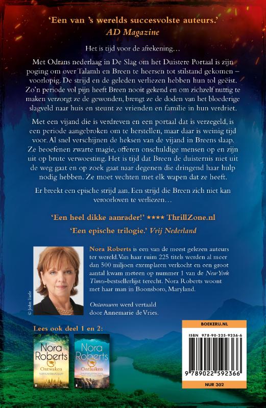 Het derde deel van de meeslepende Drakenhart-serieHet is tijd voor de afrekening…Met Odrans nederlaag in De Slag om het Duistere Portaal is zijn poging om over Talamh en Breen te heersen tot stilstand gekomen – voorlopig. De strijd en de geleden verliezen hebben hun tol geëist. Zo’n periode vol pijn heeft Breen nooit gekend en om zichzelf nuttig te maken verzorgt ze de gewonden, brengt ze de doden van het bloederige slagveld naar huis en steunt ze vrienden en familie in hun verdriet.Met een vijand die is verdreven en een portaal dat is verzegeld, is een periode aangebroken om te herstellen, maar daar is weinig tijd voor. Al snel verschijnen de heksen van de vijand in Breens slaap. Ze beoefenen zwarte magie, offeren onschuldige mensen op en zijn uit op brute verwoesting. Het is tijd dat Breen de duisternis niet uit de weg gaat en op zoek gaat naar degenen die dringend haar hulp nodig hebben. Ze moet vechten met elk wapen dat ze heeft.Er breekt een epische strijd aan. Een strijd die Breen zich niet kan veroorloven te verliezen…In de pers‘Een van ’s werelds succesvolste auteurs.’ AD Magazine‘Een heel dikke aanrader!’ **** ThrillZone.nl‘Roberts weet precies hoe ze haar publiek moet betoveren.’ The Washington Post