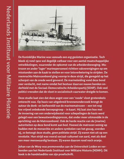 De Koninklijke Marine was vanouds een erg gesloten organisatie. Toch bleek zij rond 1900 wel degelijk vatbaar voor een aantal maatschappelijke ontwikkelingen, waaronder de opkomst van de arbeidersbeweging. Matrozen en ander ‘lager’ marinepersoneel richtten vakverenigingen op om misstanden aan de kaak te stellen en voor lotsverbetering te strijden. De roemruchte Matrozenbond ging voorop in deze strijd, die geregeld op het scherpst van de snede werd gevoerd. De marineleiding vond deze bond zeer verdacht, met name omdat het bestuur daarvan nauwe banden onderhield met de Sociaal-Democratische Arbeiderspartij (SDAP). Ook veel politici vreesden dat de vloot in socialistisch vaarwater zou komen. Deze studie laat zien dat deze angst voor een ‘roode’ vloot grotendeels onterecht was. Op basis van uitgebreid bronnenonderzoek brengt de auteur de denk- en leefwereld van de marinematrozen – een tot nog toe vrijwel onbekende beroepsgroep – in kaart. Hij laat zien hoe met de invoering van een onderwijsbestel voor schepelingen de basis werd gelegd voor een bewustwordingsproces, dat onder meer uitmondde in de oprichting van de Matrozenbond. Ook de harde reactie van de (marine)autoriteiten op deze bond komt aan bod. Hoewel de matrozen weinig op hadden met de monarchie en andere symbolen van het gezag, voerden zij, zo betoogt deze studie, geen politieke strijd. Zij waren niet uit op een revolutie. Hun strijd was vooral sociaal-cultureel van aard, met als doel een meer menswaardig bestaan. Zij waren daarom rood noch oranje. Johan van de Worp was promovendus aan de Universiteit Leiden en is verbonden aan het Nederlands Instituut voor Militaire Historie (NIMH). Dit boek is de handelseditie van zijn proefschrift.